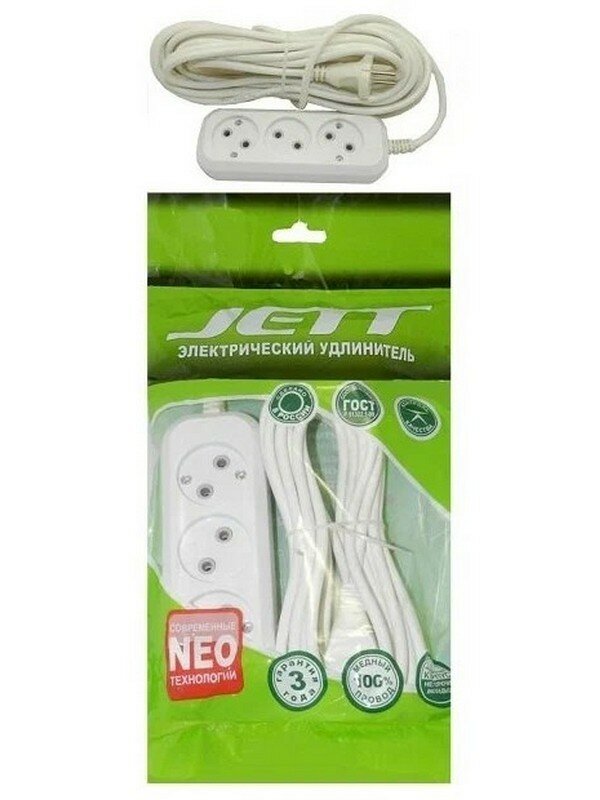 Электрический удлинитель Jett предназначен для подключения удаленных от стационарной розетки электроприборов.