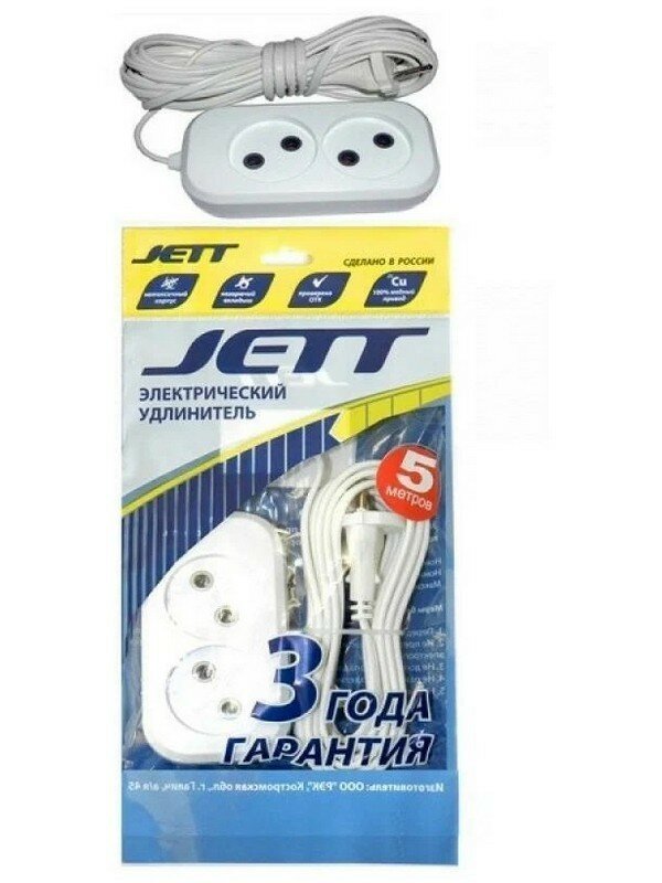 Электрический удлинитель Jett предназначен для подключения удаленных от стационарной розетки электроприборов.