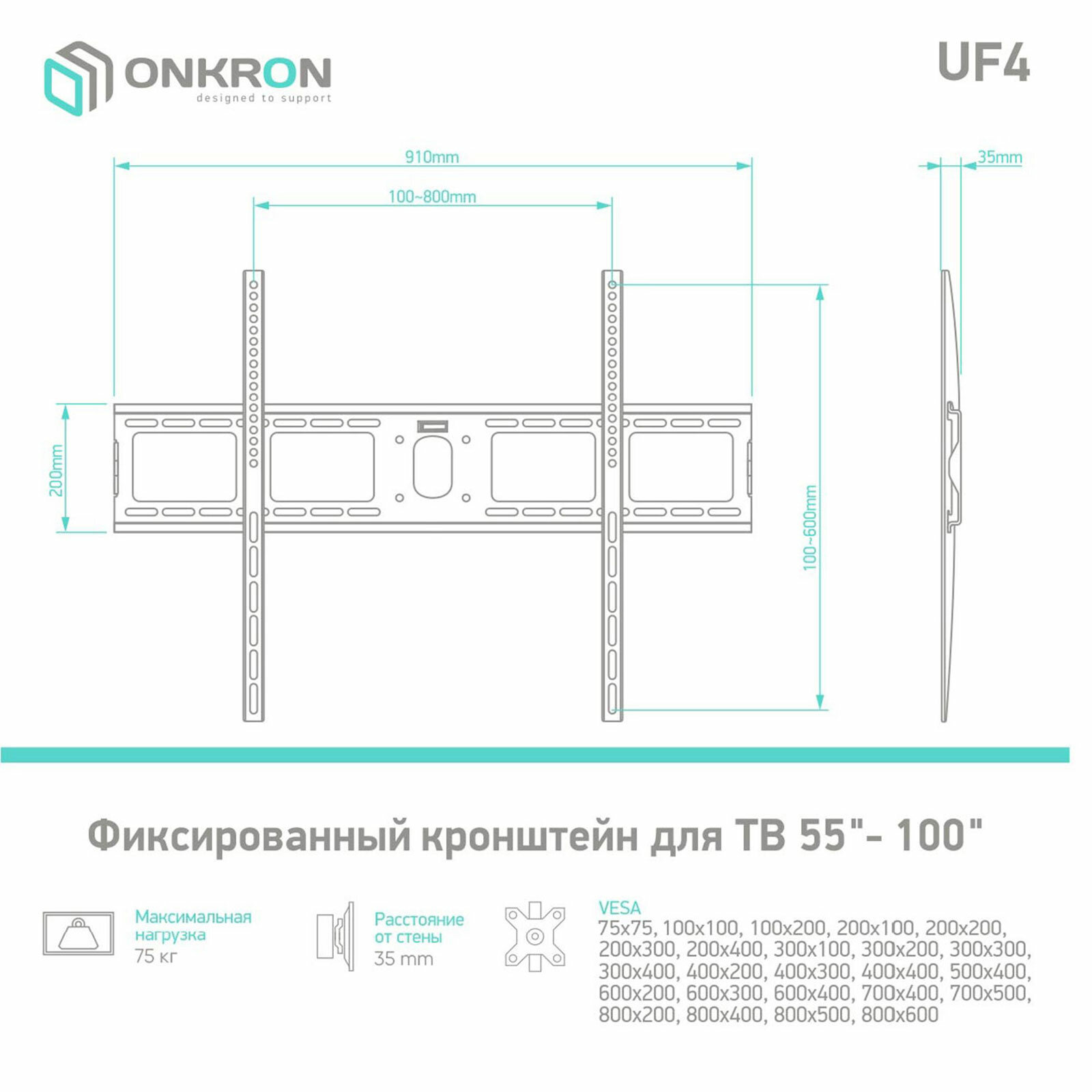 - ONKRON кронштейн для телевизора UF4 40_-80_ фиксированный, чёрный