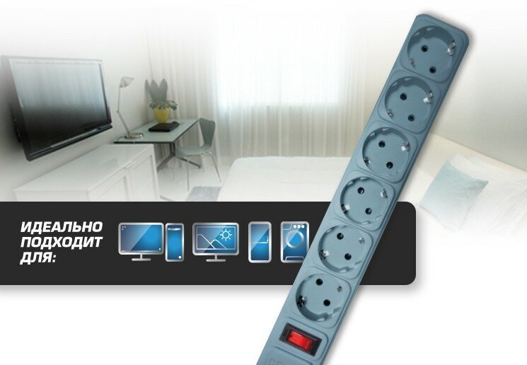 Сетевой фильтр Centek СТ-8901-6-3.0 для защиты от перегрузки и короткого замыкания, от импульсных помех бытовой и электронной техники. 6 универсальных розеток с заземлением. Автоматический предохранитель. Встроенный выключатель с LED-подсветкой. Возможность крепления на стену. Огнеупорный корпус из ударопрочного пластика. Сила тока 10 А, максимальная нагрузка 2200 Вт. Длина кабеля 3,0 м.