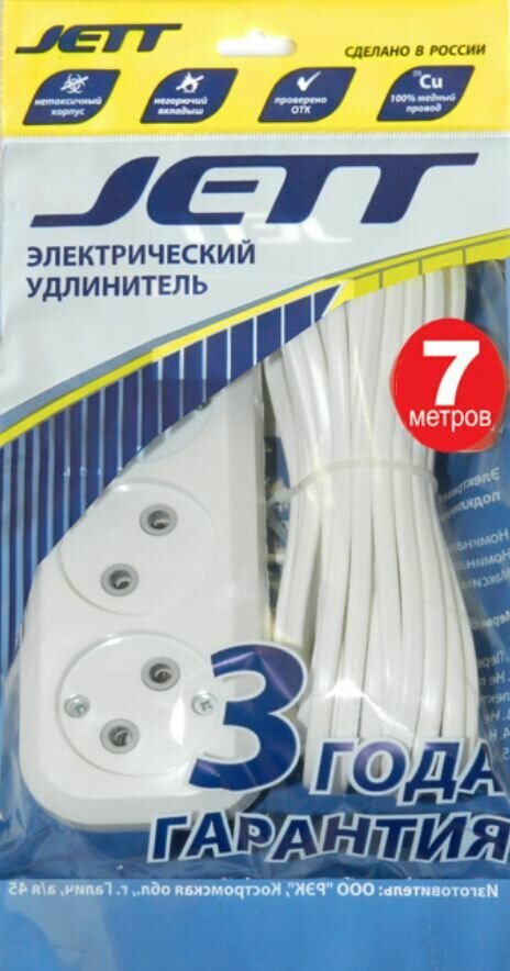 Сервис сравнения цен СкидкаГИД предлагает сравнить цены на товар «Сетевой удлинитель Jett 155-077 РС-3 (провод ШВВП), 7 м»