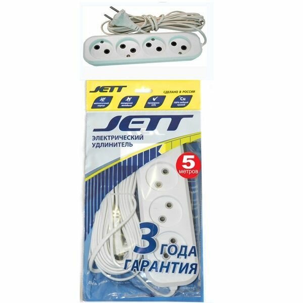 Сетевой удлинитель Jett 155-085 РС-4 (провод ШВВП), 5 м