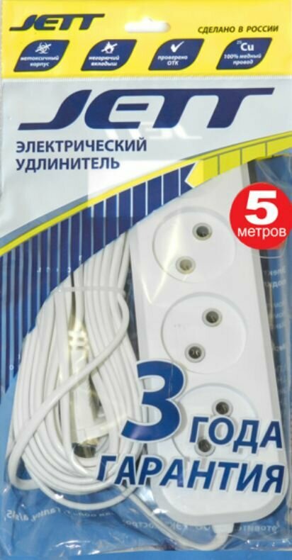 Сервис сравнения цен СкидкаГИД предлагает сравнить цены на товар «Сетевой удлинитель Jett 155-085 РС-4 (провод ШВВП), 5 м»