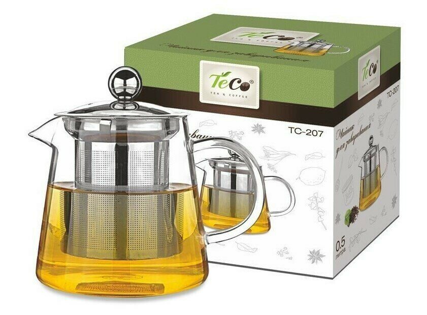 - Чайник для заваривания TECO 500 мл из стекла c ситом и крышкой из стекла 207-TC