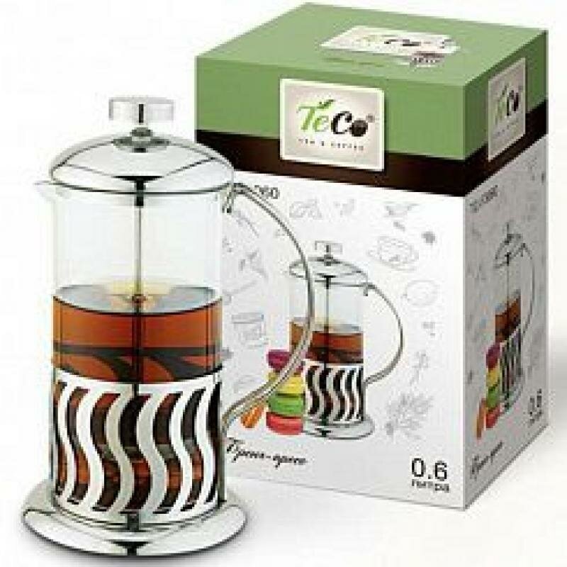 Френч-пресс Teco поможет приготовить вкусный и ароматный чай или кофе. Колба изготовлена из высококачественного термостойкого стекла. Основание, ручка и крышка выполнены из нержавеющей стали. Плотно прилегающая крышка позволяет надолго сохранить аромат напитка. Фильтр-поршень обеспечивает равномерную циркуляцию воды и насыщенность напитка. С его помощью также можно регулировать степень крепости напитка. Остановить процесс заваривания легко, для этого нужно просто опустить поршень, и все уйдет вниз, оставляя вверху напиток, готовый к употреблению.