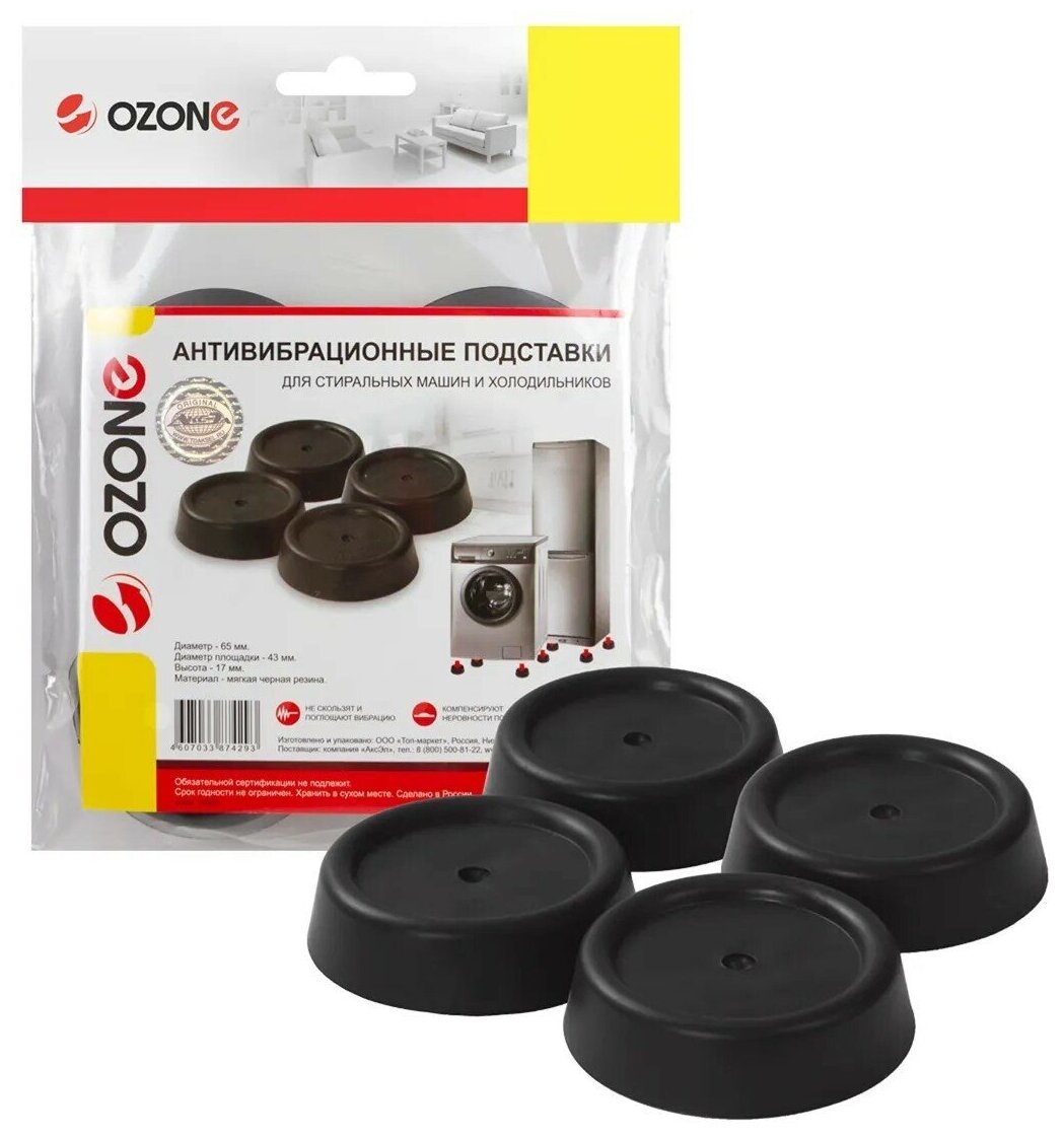 Антивибрационные подставки OZONE черные. Подставки для стиральных машин предназначены для устранения шума и вибрации, возникающих в процессе работы крупной бытовой техники. Антивибрационная подставка под стиральную машинку - подходит для всех типов неровного и наклонного пола, регулирует баланс, предотвращает скольжение, поглащает и значительно снижает шум. Антивибрационные подставки обладают амортизирующим эффектом, сильной прочностью и долговечностью. Оптимальный размер позволяет легко и просто устанавливать подставки под ножки приборов. Силиконовые подставки можно использовать : как подставки для стиральных машин, подставки для посудомоечных машин, подставки для холодильника, подставки для холодильных и морозильных камер. эффективно поглощают вибрацию, компенсируют неровности пола. Устанавливаются на ножки холодильников и стиральных машин. Количество предметов в упаковке, шт: 4 Материал: Силикон