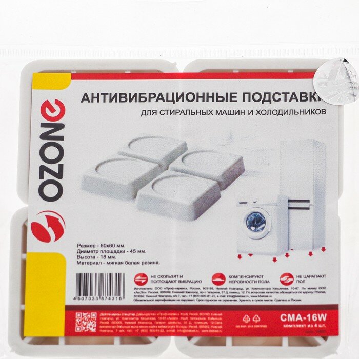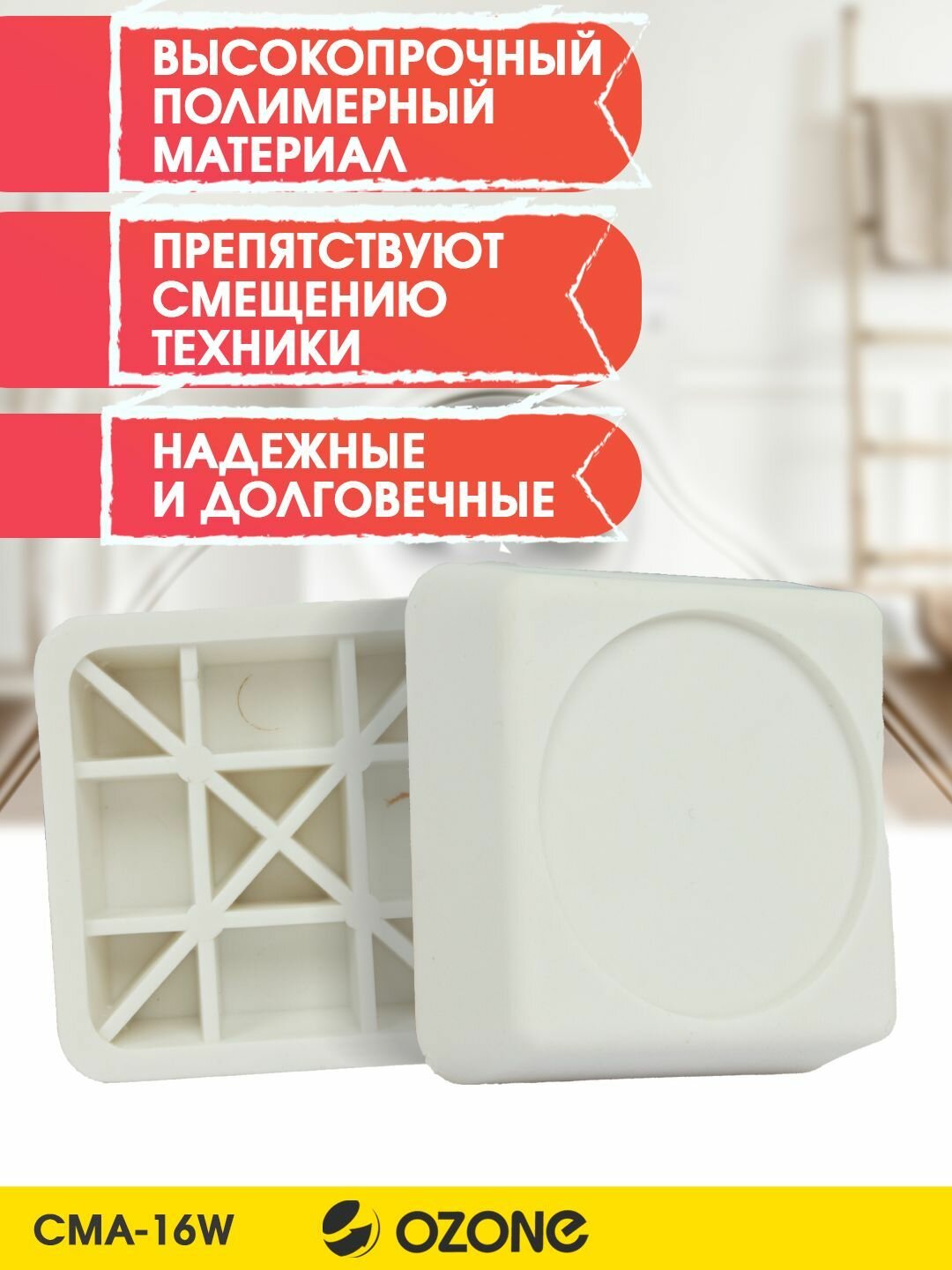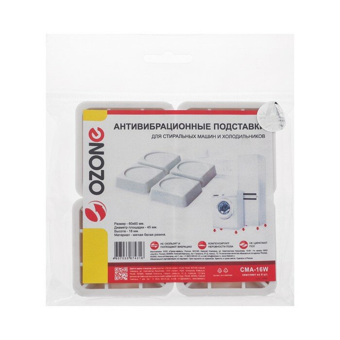 Антивибрационные подставки OZONE White – это идеальное решение для стиральных машин. Они обеспечивают надежную фиксацию и предотвращают возникновение вибрации при работе техники, что позволяет улучшить ее производительность и снизить износ деталей.