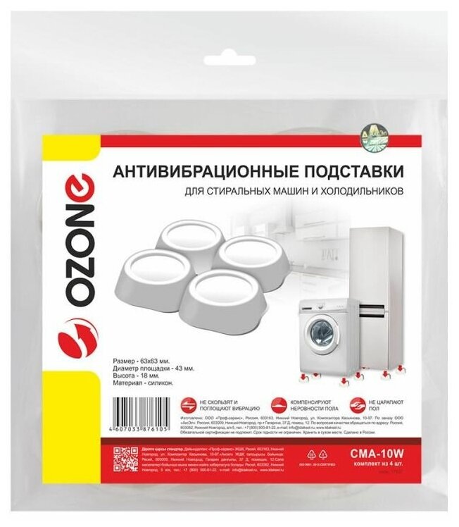 Не забывайте о заботе о вашей технике. С антивибрационными подставками Ozone вы обеспечите своей стиральной машине долгую и безопасную службу, избегая необходимости в серьезном ремонте или замене.