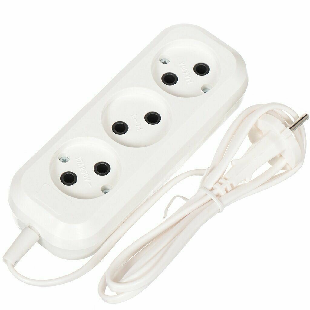 Шнур плоский, тонкий. Пишут на упаковке, что предназначен для 1300 В - сейчас техника потребляет гораздо больше, а значит необходимость в трёх розетках на удлинителе отпадает (подключить можно что-то одно).