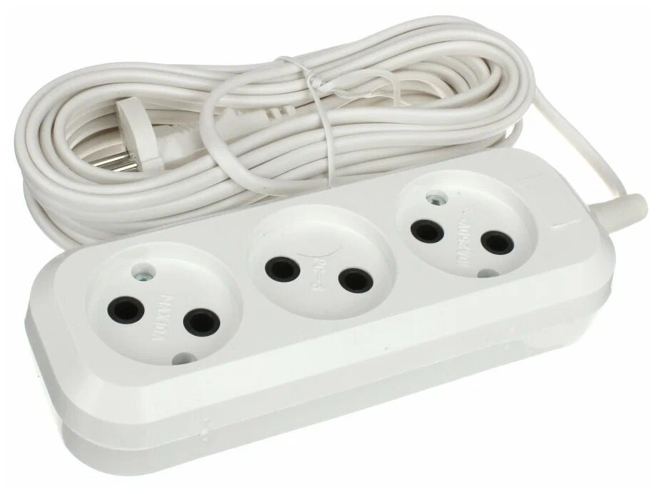 - Удлинитель нормальный, за смешную цену. Брала для пылесоса, чтобы не переключать розетки, когда убираешь квартиру. Длина 5 метров. Сам удлинитель на 3 розетки. На упаковке указано, что выдерживает от 6 до 10 А.