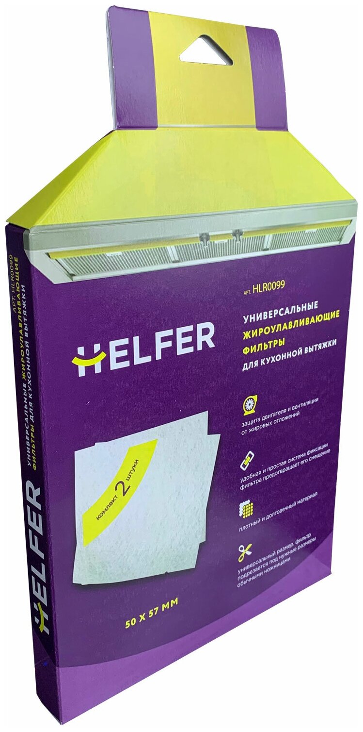 Техника для дома Helfer Фильтры жироулавливающие Helfer (2 шт) подходят для большинства моделей кухонных вытяжек размером 50 и 60 сантиметров. Фильтры обеспечивают тщательную фильтрацию воздуха, улавливая и поглощая посторонние запахи. Кроме того, они эффективно защищают двигатель и вентиляционный канал кухонной вытяжки от образования жировых отложений, продлевая срок ее службы.