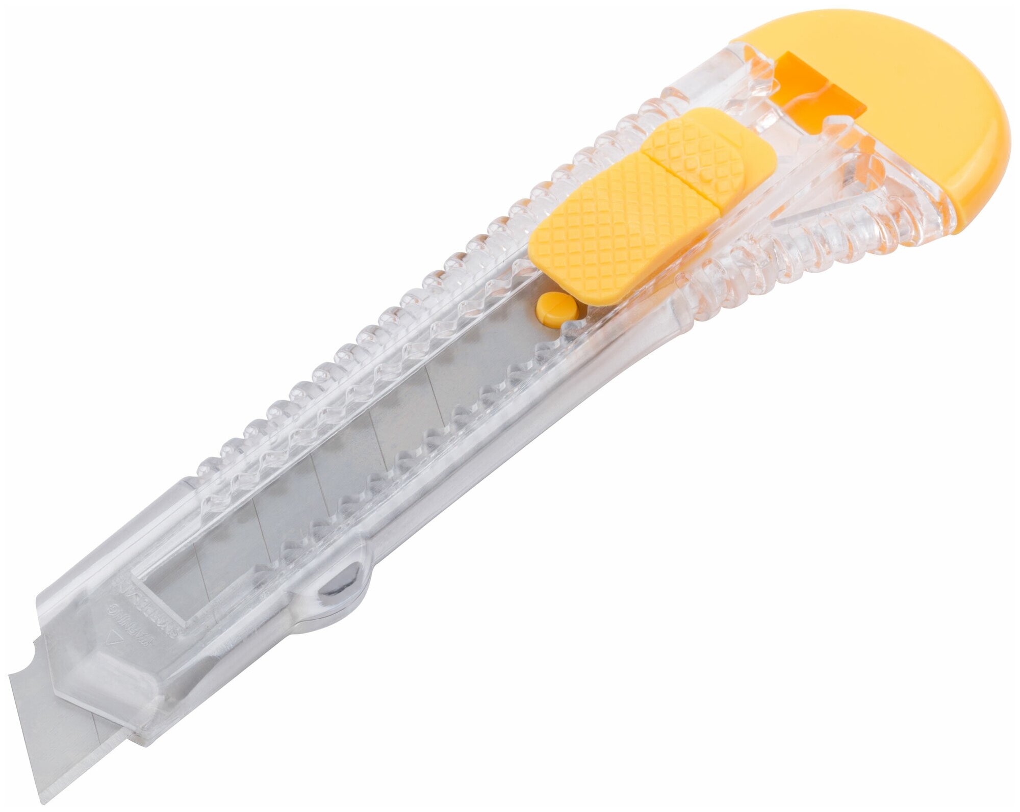 «Отламывающееся» лезвие с пластиковым прижимом из инструментальной стали. Материал: корпус из пластика.Упаковка : пакет с картонным подвесом.