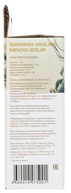 | Источник питания мыши | встроенный перезаряжаемый аккмулятор |