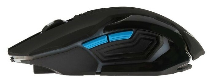Хорошая мышка за небольшие деньги. Сразу скажу, она большая (плюс это или минус, думайте сами). Дизайн агрессивный. Корпус эргономичный, сидит в руке хорошо, кнопки очень чувствительные. Присутствует клавиша DPI (разрешение 600/800/1200/1600). Помимо двух основных кнопок (больших левой и правой), мышка снабжена дополнительными кнопками. Зверек не на батарейках, что избавило меня от воровства оных из различных домашних гаджетов (пульты, детские игрушки), потому как заряд пропадает в самый неподходящий момент. Провод для подзарядки идет в комплекте, подзарядка около 30-и минут. Заряда хватает надолго, есть режим сна. Присутствующую подсветку (порядка 5-6 цветов) можно отключить.