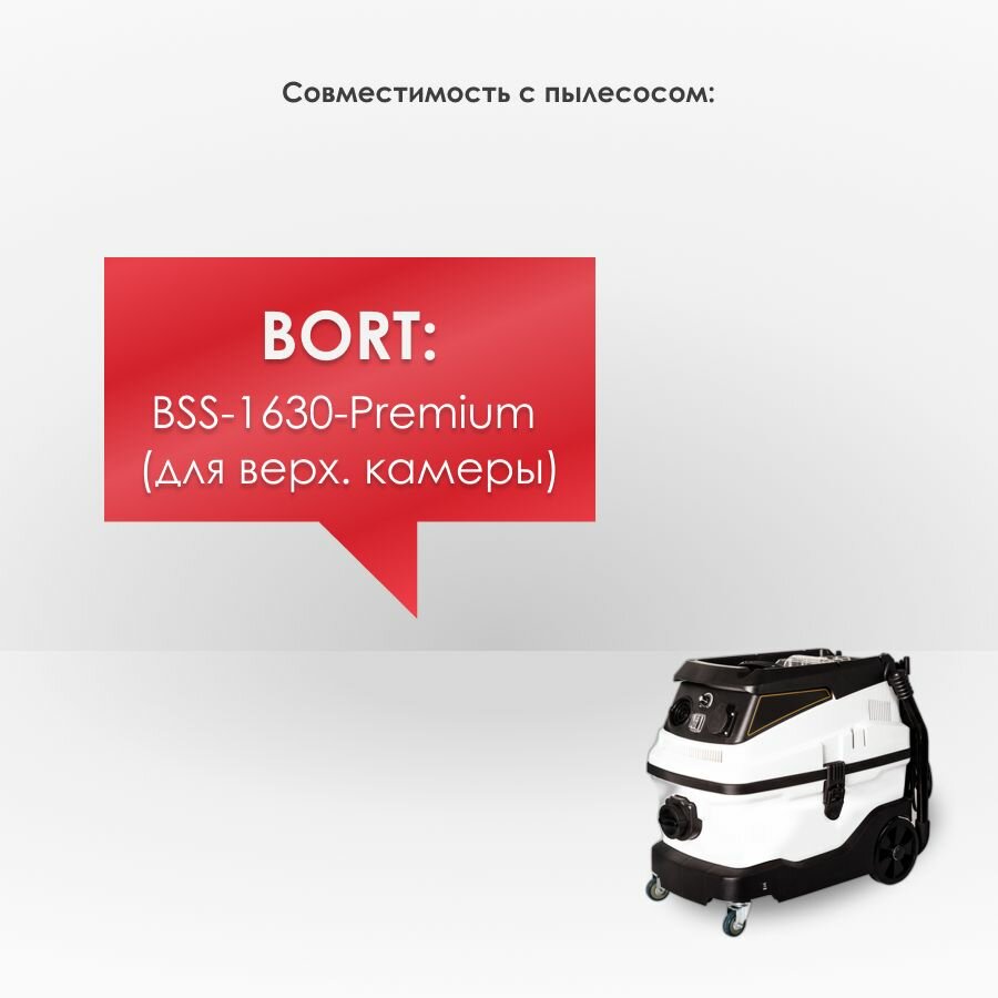 | Прочие особенности и свойства | мощный профессиональный пылесос BORT BSS-1630-Premium. Эта машина предназначена для уборки на стройке, хозяйственных помещений и на объектах коммерческой недвижимости. Трехступенчатая система фильтрации, состоящая из фильтра-мешка, аквафильтра и HEPA-фильтра задерживает почти все частицы пыли. Особенно пылесос подойдет аллергикам. Полуавтоматическая система пневмоочистки фильтра поддерживает силу всасывания в течении продолжительного времени. Регулировка мощности всасывания, розетка для электроинструмента с синхронизированным пуском, функция выдува. Для легкого и комфортного перемещения пылесос имеет очень удобную ручку, которая складывается в положении 'паркинг'. Кроме того, верхняя часть устройства выполнена в виде плоской площадки, в мастерской, при уборке, всегда можно установить на нее любой плоский бокс. |