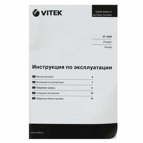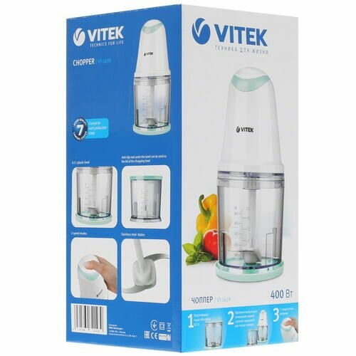 Измельчитель Vitek – используется для измельчения небольшого количества овощей! Измельчитель предназначен для измельчения и шинковки овощей, фруктов и других продуктов в домашних условиях. Удобное и понятное механическое управление позволит вам с легкостью пользоваться этим прибором. Двигатель обходится малым энергопотреблением и не создаёт сильного шума при интенсивной работе. Он безопасен в использовании и исключает возможность микротравм.