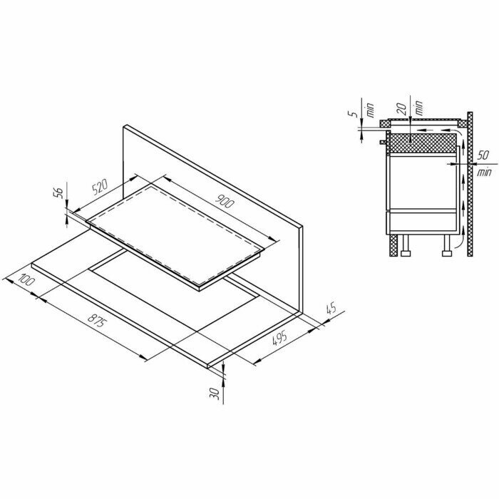 | Размер ниши для встраивания (ШхГ), мм | 875х495 |