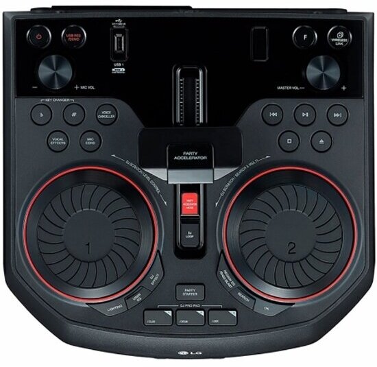 | Дополнительно | 2 вертушки для скретча, DJ-эффекты, FM-радио, Автоматическое начало воспроизведение музыки, Конструктор семплов, Подсветка динамиков, Пульт ДУ, Сабвуфер, Таймер, Усиление баса Bass Blast |