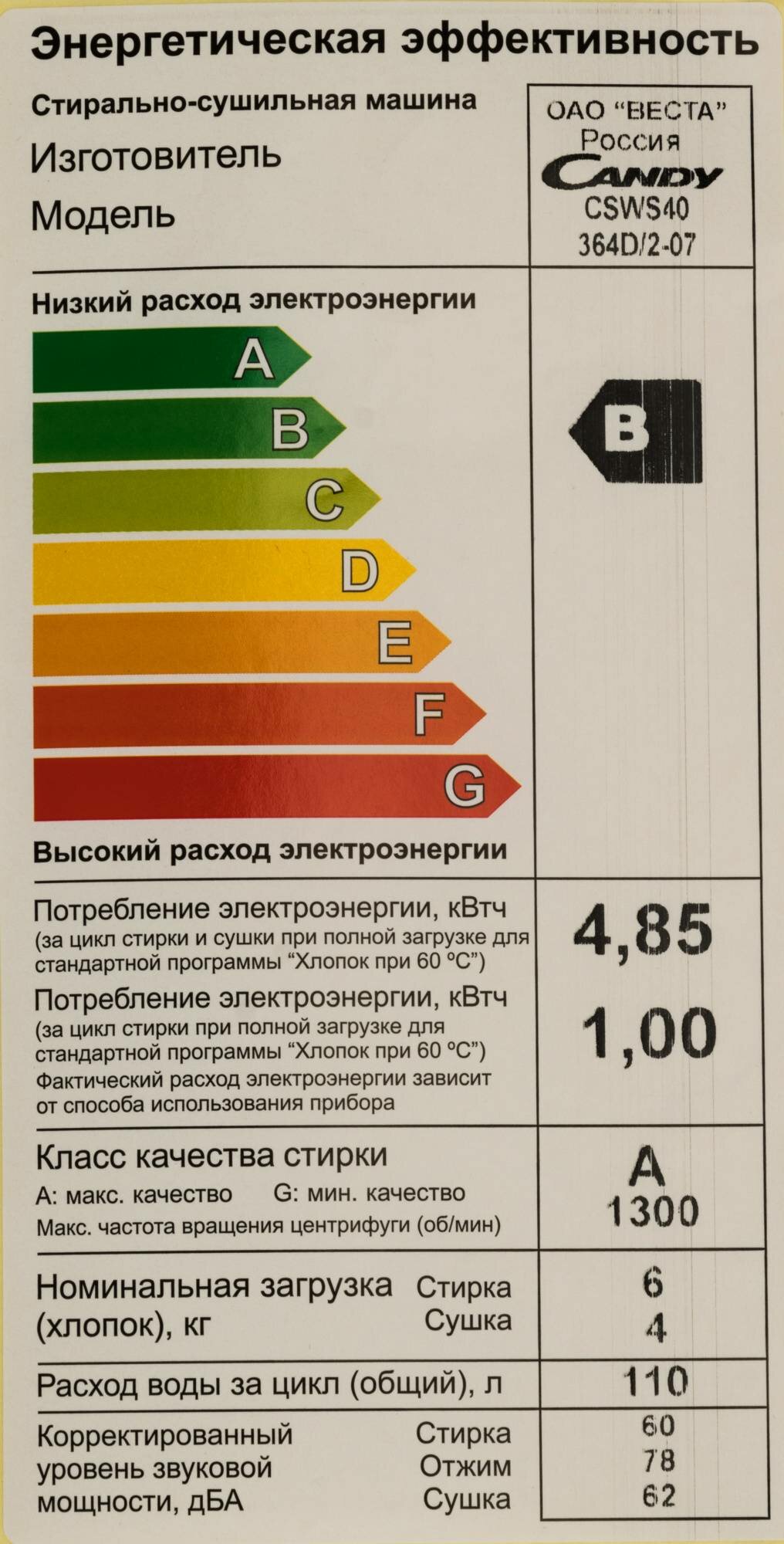 Энергопотребление за цикл с сушкой | 4.65 кВтч |