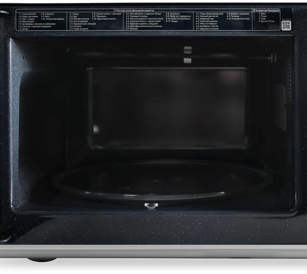 | Прочие особенности и свойства | Разогрев с грилем,Функция «+30 CEK Гриль» обеспечивает идеальную текстуру вашего блюда, благодаря чему оно выглядит удивительно аппетитным. Время приготовления продлевается на 30 секунд, чтобы получить подрумяненное блюдо с использованием гриля.,,БИОкерамическое покрытие,Прочное БИОкерамическое покрытие легко очищается и не царапается. Его гладкую поверхность можно очистить без использования жестких чистящих средств. Rроме того покрытие не теряет цвет после длительной эксплуатации. Оно не подвержено коррозии, не царапается и служит долго.,,Ускоренная разморозка,Функция позволяет быстро и равномерно разморозить продукты. Вы сможете насладиться великолепным вкусом любимой еды в любое время года.,,Рецепты русской кухни,Насладитесь вкусами традиционных блюд. С помощью запрограммированных рецептов, вы можете приготовить любое из этих блюд нажатием нескольких кнопок.,,Очистка от запахов,Режим устранения запахов позволяет легко и быстро удалить неприятные запахи из рабочей камеры. Так что ваше блюдо приготовится аппетитным и без посторонних запахов. |