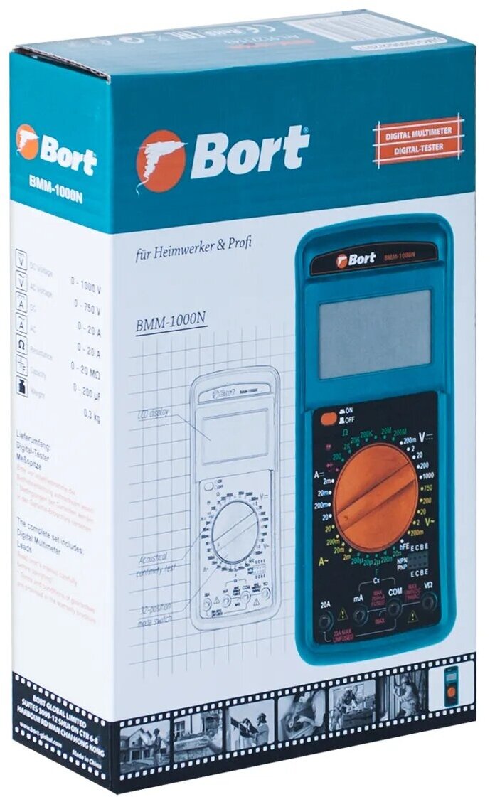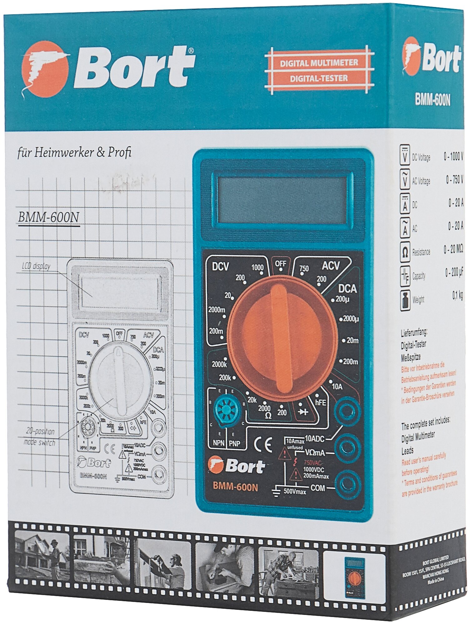 Мультиметр Bort – обладает минимальной погрешностью! Многофункциональный детектор измеряет сопротивление тока и его напряжение. Может использоваться для работ в сети с постоянным напряжением до 1000 В и переменным током до 750 В. Большое количество режимов и удобное переключение позволят быстро и легко ориентироваться при работе. Портативный, легко поместится в кармане электрика. В комплекте поставляется 2 кабеля со щупами, инструкция по эксплуатации.