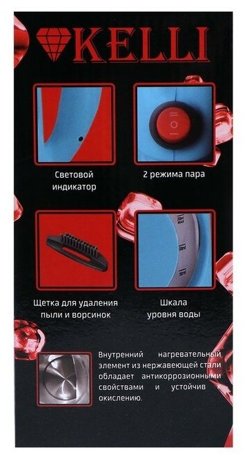 Отпариватель Kelli – достаточно компактный и удобный в использовании! Большая мощность прибора позволяет удалять любые складки на ваших вещах. Удобное управление позволит вам с легкостью пользоваться этим отпаривателем. Эта модель оборудована функцией постоянной подачи пара с возможностью регулировки, которая поможет справиться со сложными складками. Отпариватель подходит для ухода за всеми тканями — это великолепное решение для деликатных тканей, таких как шелк и кашемир.
