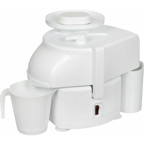 Очень посредственное изделие. Пытался получить сок из яблок,это ужас. Во первых при добавлении плодов в приёмник их выбрасывает с силой наружу ,приходится прикрывать ладонью в тоже время сама соковыжималка начинает движение по поверхности стола. Не знаешь ,что хватать . И это ещё не всё, сок поступает с жомом .В итоге плюнул на такой девайс.