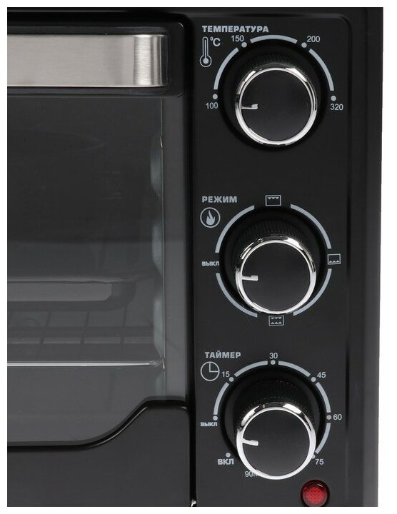 Благодаря внутреннему объему мини-печи в 30 литров вы приготовите сразу большую порцию выпечки. Мощность устройства - 1600 Вт, а максимальная температура нагрева - 320 °C: вы сможете готовить блюда на любой вкус. Противень и решетка уже идут в комплекте.