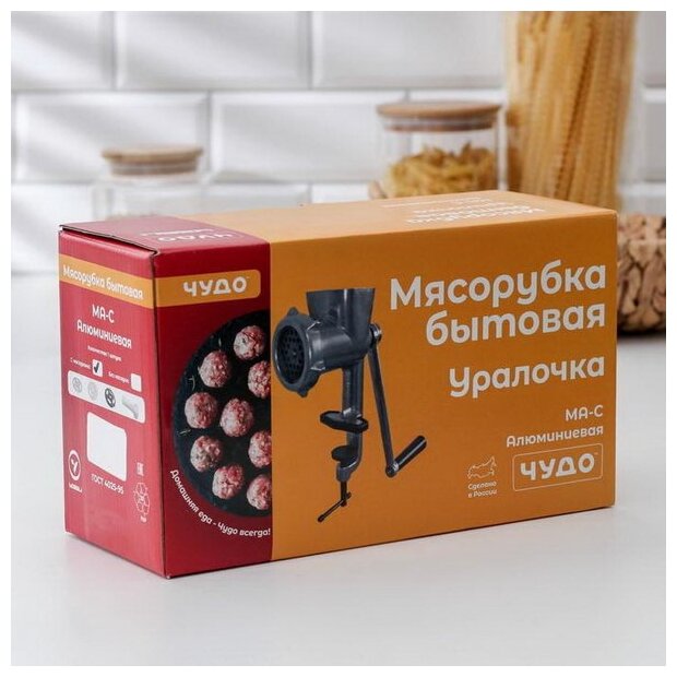 Такое изобретение как ручная мясорубка приобрела репутацию еще с давних советских времен донельзя простого и практичного устройства, а также крайне надежного- она способна долгие годы функционировать на вашей кухне, измельчая мясо, рыбу и другие продукты. Благодаря надежным и прочным материалам, из которых изготовлено это ручное устройство, долгий срок эксплуатации Вам гарантирован. И если Вы планируете готовить небольшие количества мясного фарша, то тогда ручная мясорубка- это именно то, что Вам необходимо. И одной из таких превосходных моделей является как раз Уралочка МА-С. Обладая всеми вышеупомянутыми качествами, она придется по нраву каждому. Более того, стоит отметить то, что благодаря легкому весу и малым габаритам она проста и удобна как во время транспортировки, так и при хранении.