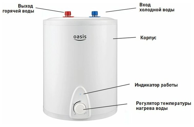 Электрический водонагреватель Oasis – комфортное использование горячей воды! Встроенный магниевый анод помогает защитить водонагреватель от образования ржавчины и сократить образование накипи. Пользоваться этим водонагревателем очень просто благодаря удобному механическому управлению. Объем бака обеспечит вас необходимым количеством горячей воды. Высокая мощность обеспечивает быстрый нагрев воды.