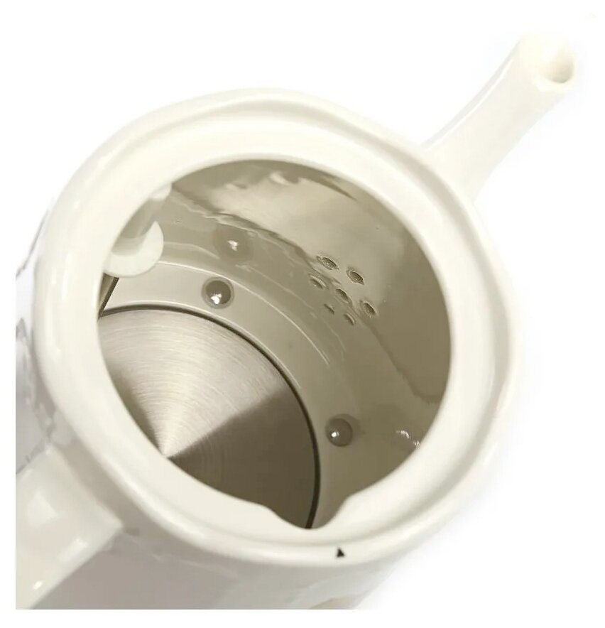 Понравилась форма носика, очень удобно пользоваться. Большая крышка позволяет спокойно мыть чайник внутри рукой. Единственная придирка - долго закипает вода, почти 9 минут до отключения (это особенность всех керамических чайников, они долго прогреваются, но и значительно дольше остывают, а это уже плюс). Классно смотрится на столе, совсем не так, как простые обычные чайники. Полезно 1 0
