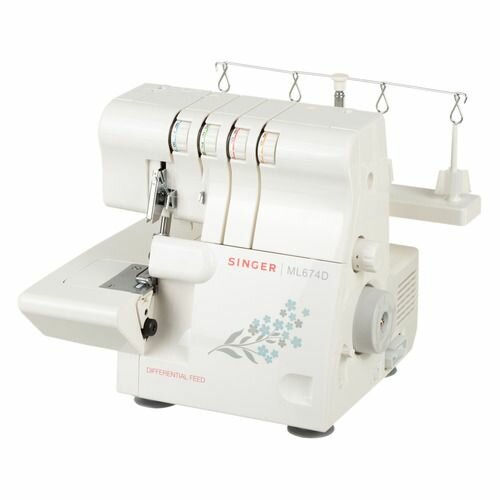 Оверлок Singer – полупрофессиональная модель, работающая с потребляемой мощностью 120 Вт. Подойдет для всех типов тканей, включая тяжелые и многослойные. В устройстве предусмотрена функция дифференциальной подачи материала от 0,7 до 2 мм, за счет которой исключается вероятность волнистости и посадки швов.