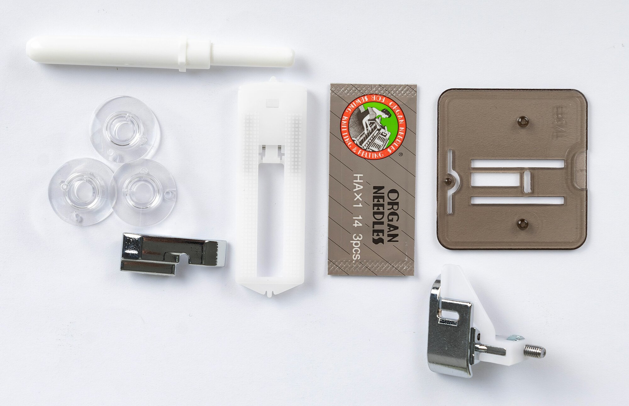 | Комплект поставки | Швейная машина, набор лапок, комплект игл (3 шт.), масленка, нож-вспарыватель, отвертка, шпульки (4шт.), документация |