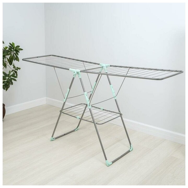 - Очень удобная сушилка, особенно то что ушки регулируются и снизу есть полочка, удобно сушить одеяла по размерам не слишком узкая и длинная