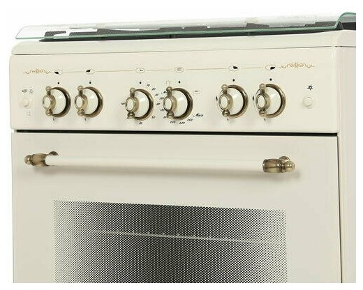 | Особенности | гриль, электроподжиг, подсветка духовки, таймер, термостат, газ-контроль духовки, ящик для посуды, вертел |