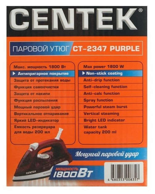 - Обзор Утюга Centek CT-2347 Purple. Высокая мощность, быстрый результат.
