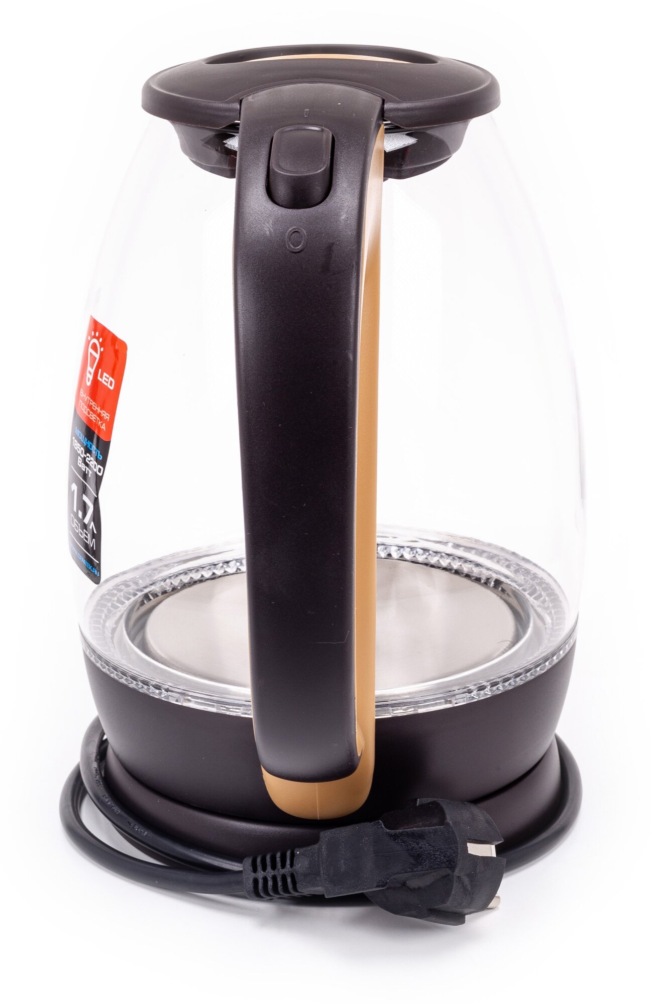 Одной из главных особенностей этого чайника является его корпус из высококачественного боросиликатного стекла, которое не только выглядит стильно, но и гарантирует долговечность использования. LED-подсветка придаёт ему особый шарм и позволяет следить за процессом нагрева.