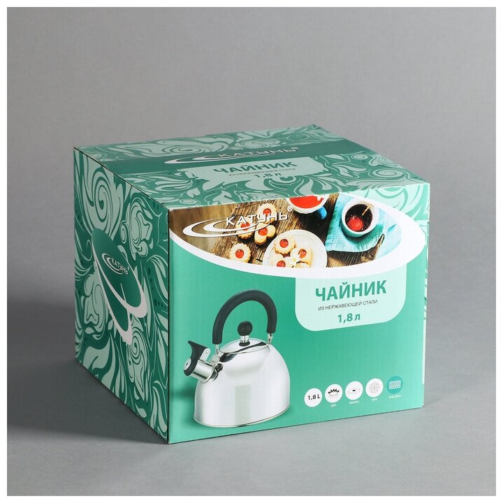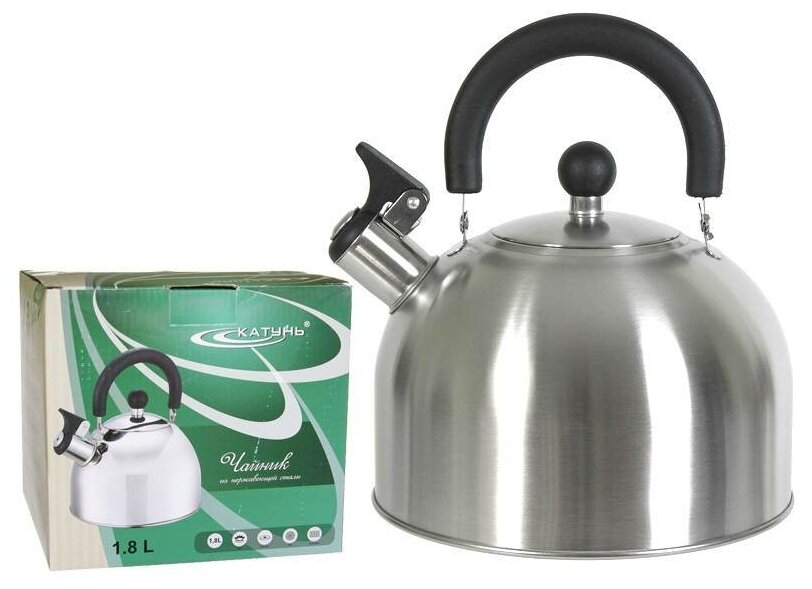 Чайник для плиты ТМ "Катунь" изготовлен из высококачественной нержавеющей стали. Бакелитовые ручки чайника практически не нагреваются, а курковый механизм позволяет легко поднимать насадку-свисток. Так же свисток можно зафиксировать в открытом положении, если свисток не нужен или налить воду через носик. Эта модель чайника из нержавеющей стали имеет большое количество ярких расцветок, а так же есть вариант без покрытия. Широкое цельнометаллическое однослойное дно распределяет тепло равномерно по всей поверхности, что обеспечивает быструю скорость закипания воды и устойчивость изделия. Для всех типов плит, для индукции. Упакован в цветную подарочную коробку. Объем 1,8 литра.