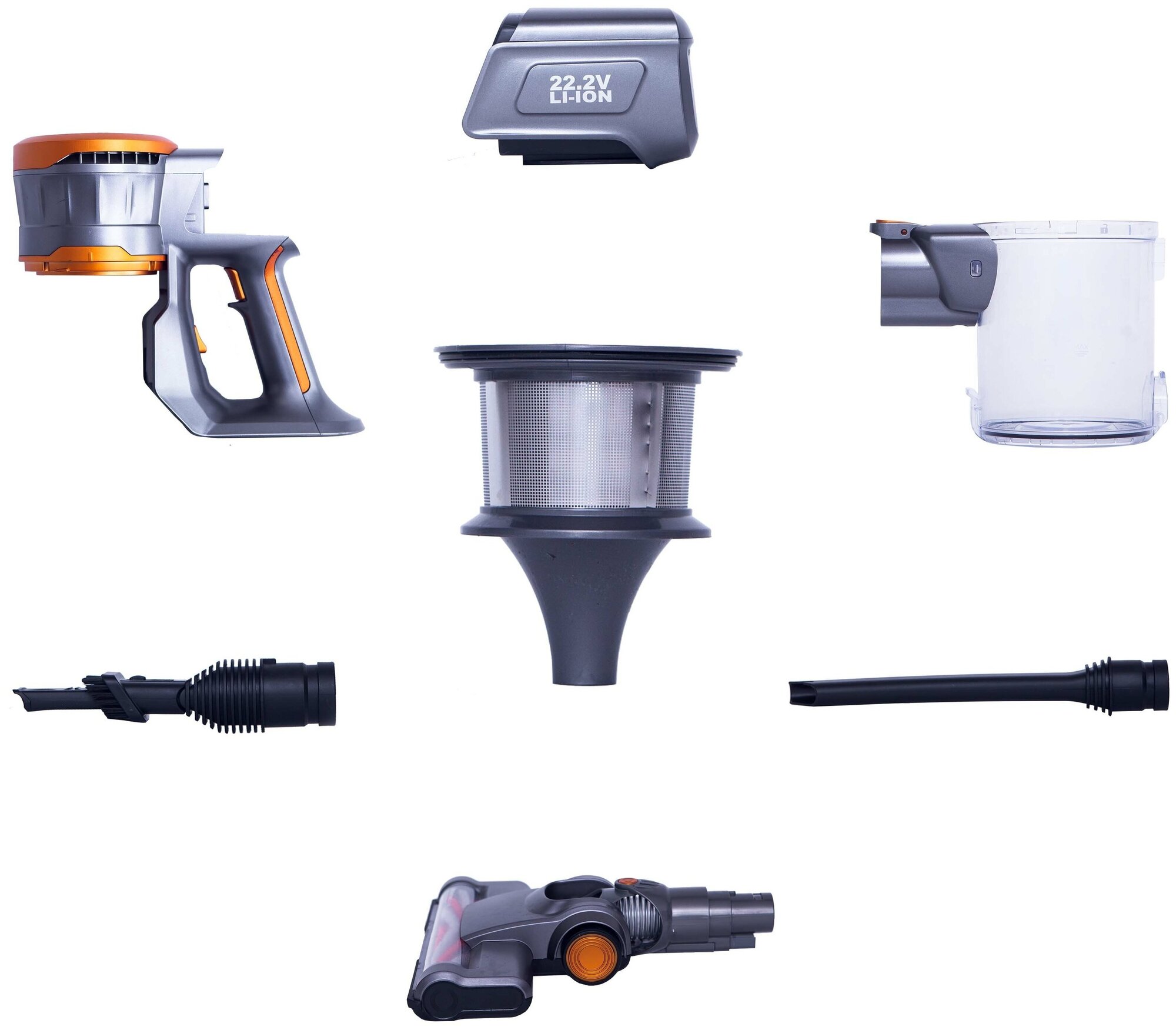 Вертикальный пылесос Tesler – высокая мощность всасывания и удобство управления! Мощный литий-ионный аккумулятор обеспечивает беспроводную работу до 35 минут. Вы также можете зарядить его в любой момент. Пылесос обеспечивает идеальные результаты уборки за счет всасывания воздуха с большой скоростью и усиленной циркуляции воздуха, что помогает эффективному оседанию частичек пыли в циклонической камере. Легкая и компактная конструкция обеспечивает удобное перемещение прибора во время уборки.