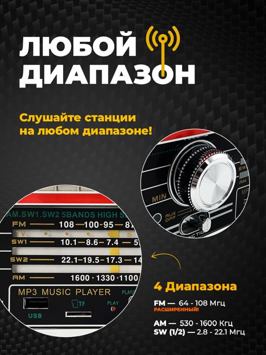 | Диапазоны радиочастот | FM, MW, LW, SW |