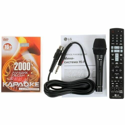 Комплектация включает пульт дистанционного управления, батарейки, проигрыватель, документацию и кабель.
