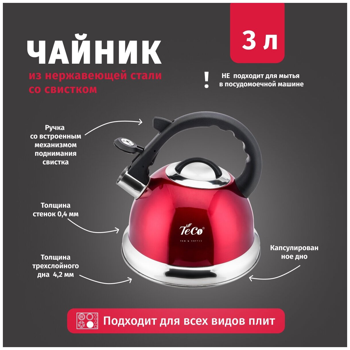 - Чайник TECO со свистком 3л TC-115-R, красный