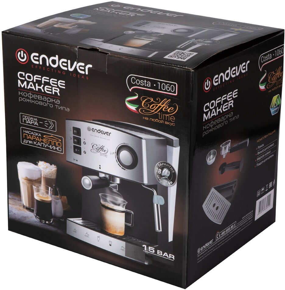 Кофеварка ENDEVER Costa-1060 эспрессо серебристый / черный [80460]