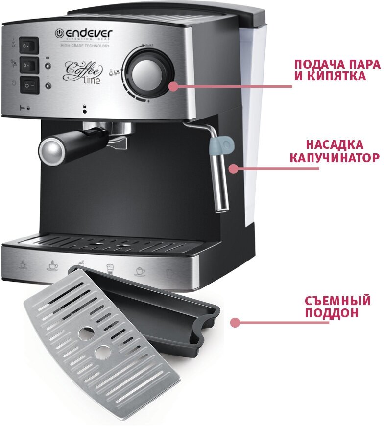 Сервис сравнения цен СкидкаГИД предлагает сравнить цены на товар «Кофеварка ENDEVER Costa-1060 эспрессо серебристый / черный [80460]»