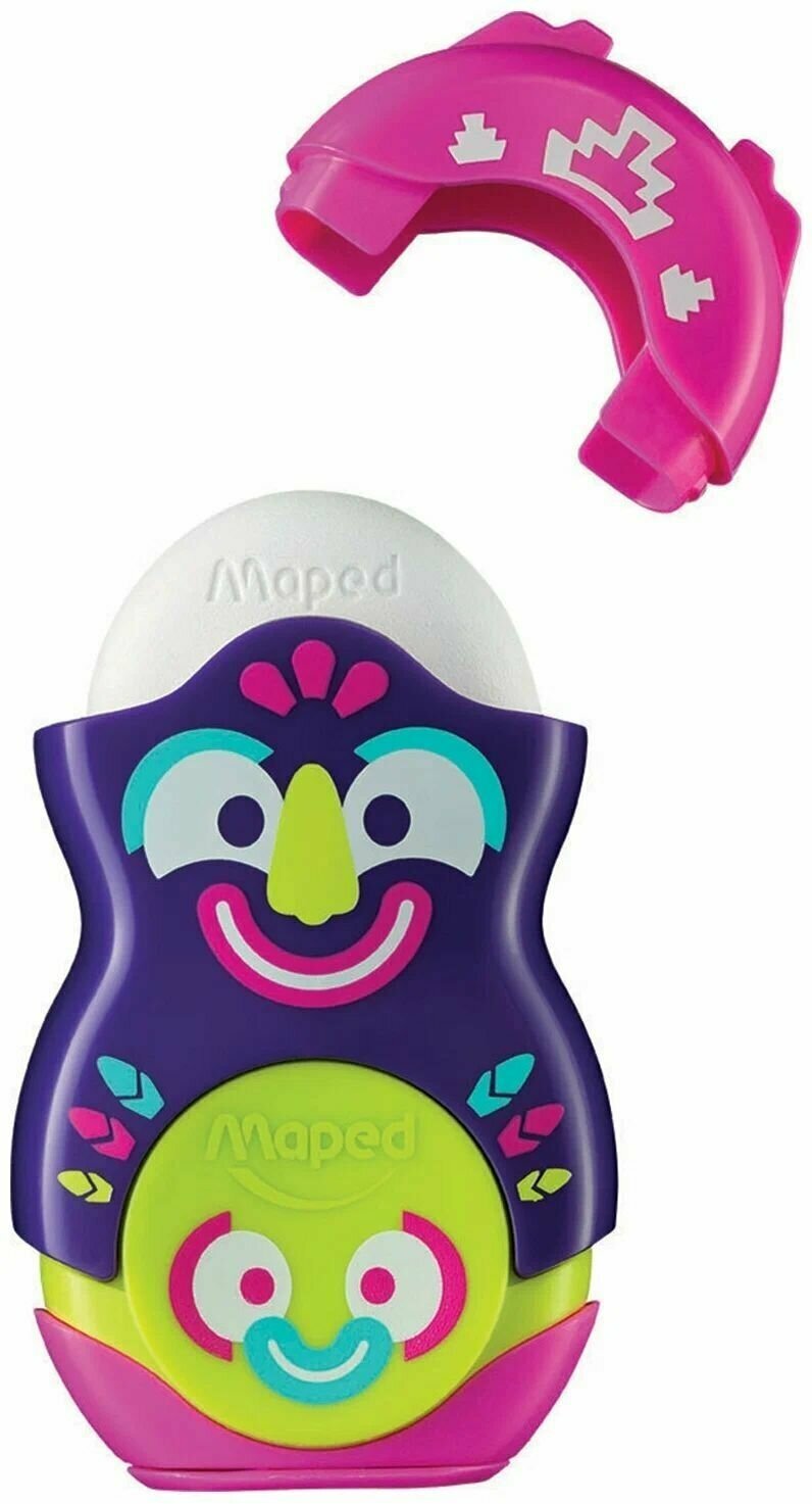 Всемирно известный французский производитель канцелярских принадлежностей для офиса, школы и дома тм MAPED представляет ластик-точилка Loopy на 1 отверстие. Удобное сочетание ластика и точилки 2 в 1 от Maped удачное решение как для школы, так и для офиса. Благодаря цветному пластиковому корпусу, точилки Loopy станут яркими аксессуарами на любом рабочем столе. Фирменное лезвие с логотипом Maped обеспечивает качественную и точную заточку, а ластик превосходно стирает карандаш с бумаги. Чистая точилка: защитная шторка не даёт стружке высыпаться из точилки, диаметр отверстия: 8 мм. Ластик не содержит ПВХ. В комплекте предусмотрен сменный ластик в блистере. Товар представлен в ассортименте без возможности выбора модели!