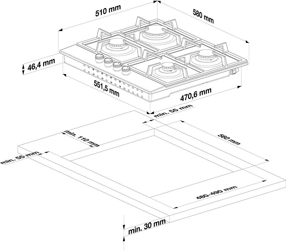 | Комплект поставки | Встраиваемая газовая панель, чугунные решетки, документация |