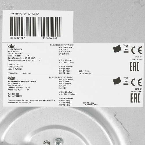 Газовая варочная поверхность Beko HILW64122S черный, независимая установка, материал поверхности закаленное стекло, количество конфорок: 4шт.
