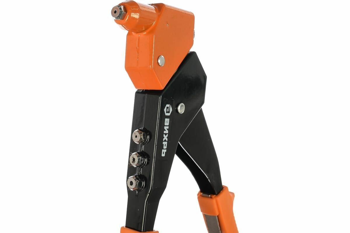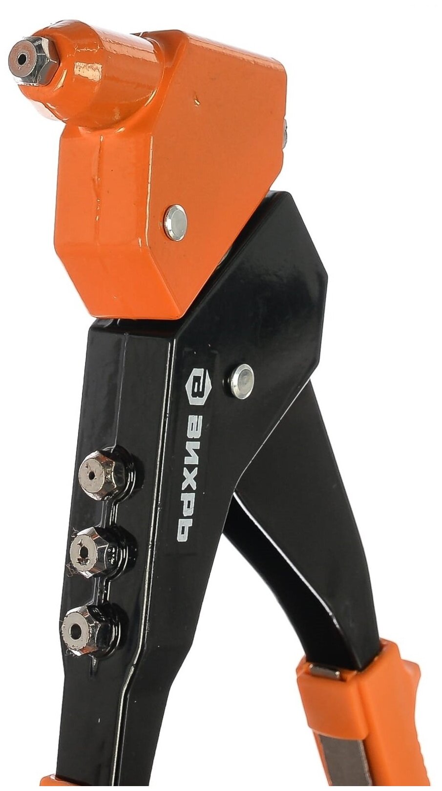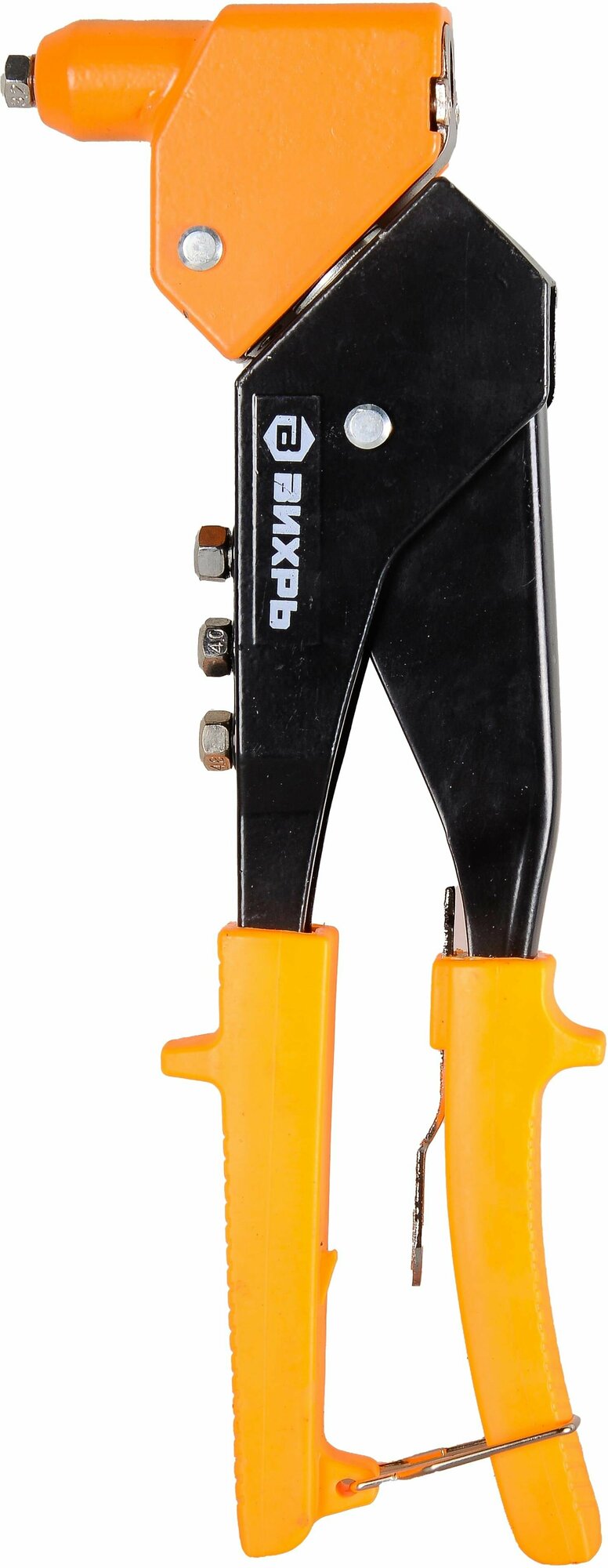 Поворотный заклепочник 250 мм, Вихрь - простой и удобный в работе ручной инструмент для скрепления различных материалов при помощи заклепок размерами: 2.4, 3.2, 4, 4.8 мм. Изделие совместимо с заклепками из стали, алюминия, нержавеющей стали и меди.