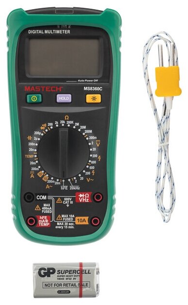 Профессиональный мультиметр MS8360C- это электроизмерительный прибор, который включает в себя несколько функций и набор измеряемых параметров.Он измеряет постоянное и переменное напряжение, а также постоянный и переменный ток, сопротивление в цепи, емкость, частоту и даже температуру.