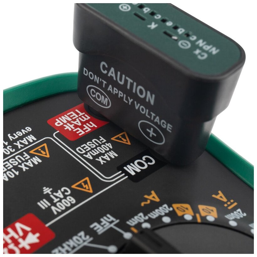 С помощью данного прибора можно проводить тестирование диодов, прозвонку целостности цепи и измерение коэффициента усиления транзисторов. Также мультиметр MS8360C оборудован специальным датчиком, с помощью которого вы бесконтактно сможете определить есть ли напряжение на участке, например в розетке, если есть необходимость демонтировать ее, то с помощью данного мультиметра вы сможете сразу узнать, если ли в ней напряжение. Таким образом, один прибор сможет заменить сразу несколько устройств одновременно.